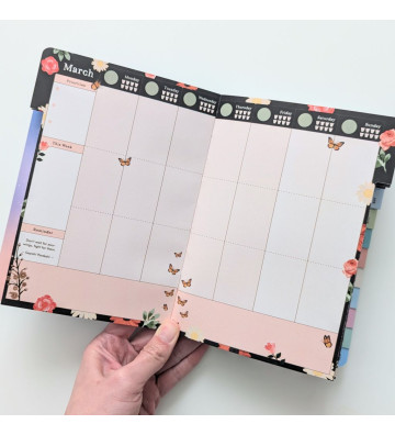 Cover design in collaboration with Shara of One Of A Kind Creative: "The Art captures the essence of stargazing with a telescope, featuring a girl immersed in the celestial world amidst a dreamy ambiance of lush plants. It symbolizes the joy of journaling and planning, as she not only gazes at the stars but also records her dreams and aspirations, showing how planning can be as enchanting as a starry night — a visual ode to the beauty of setting goals and reaching for the stars."