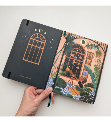 Cover design in collaboration with Shara of One Of A Kind Creative: "The Art captures the essence of stargazing with a telescope, featuring a girl immersed in the celestial world amidst a dreamy ambiance of lush plants. It symbolizes the joy of journaling and planning, as she not only gazes at the stars but also records her dreams and aspirations, showing how planning can be as enchanting as a starry night — a visual ode to the beauty of setting goals and reaching for the stars."