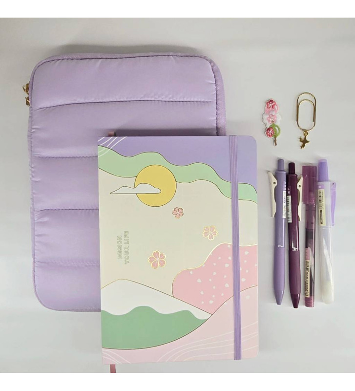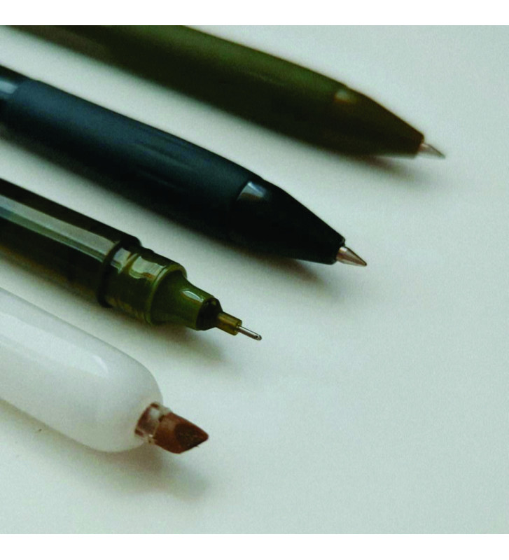 - Pens set (3 gel pens and a highlighter; ink color matches the body color)